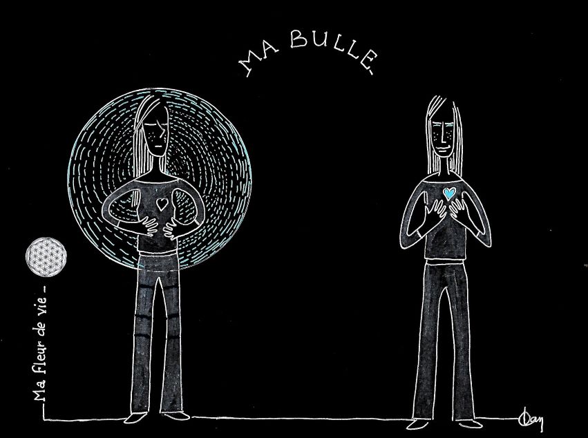 - imaginer dessiner un cercle autour de vous, une bulle et y mettre de la couleur,